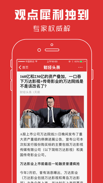 财经头条是一款专为关注财经和金融理财的人士设计的手机软件。 我们致力于打造专业、权威、为用户着想的财经浏览器。 凭借技术优势,每日精选了各大财经网站的头条新闻内容。 内容涉及财经、股票、基金、期货、债券、外汇、银行、保险等诸多金融资讯与财经信息,全面覆盖财经领域,每日更新上万条最新数据及资讯。 最快的行情! 最全面的资讯! 最齐全的功能! 最专业的数据!