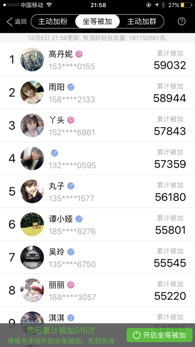 微商微信加粉王,微信加粉正版官方神器。 微信加粉每日加粉50-100人,可主动加粉、被动加粉、主动加群。 微信加粉可按地域筛选,可按性别筛选,可按职业筛选 微信加粉神器,拥有全网最大微信加粉数据资源,海量粉丝真实有效,微商被动加粉不出几日就客源滚滚,营销利器。 微商加粉请认准微信加粉王,真实有效粉丝,只有加粉王。 没有粉丝如何做微商?快快使用微信加粉王微商微信加粉王,微商客源神器,微商加粉必备 微商微信加粉王,真实粉丝客源,微信加粉不停