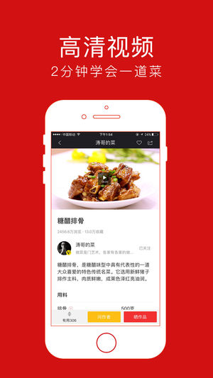 海量零失败家常菜视频做法,最受欢迎的菜谱软件! 最大最活跃的美食交流社区,超过6000万人在玩! 超贴心的早中晚餐推荐;超好玩的美食讨论圈子。 学做菜,交朋友,在这里你可以探讨关于美食的一切! 【海量菜谱】 100人的美食团队,数十万美食家共同贡献了超过50万道精选菜谱。在这里,不仅有简单易学的家常菜,更有精品专业的烘焙秘方,无论你想学习川菜、湘菜、粤菜、素菜、凉菜、煲汤,还是想做蛋糕、面包、披萨、西餐,各式各样席卷而来的美味做法,让你目不暇接爱不释手。 【兴趣交流】 厨艺、烘焙、减肥、DIY、生活……我们因兴趣而相聚。讨论,提问,观点pk,你可以在这里探讨关于美食的一切! 每天与千万…