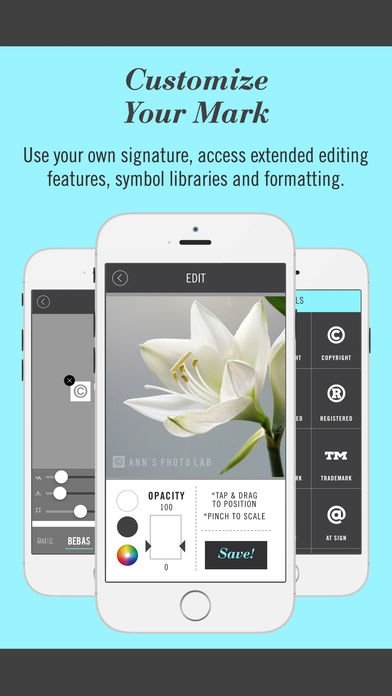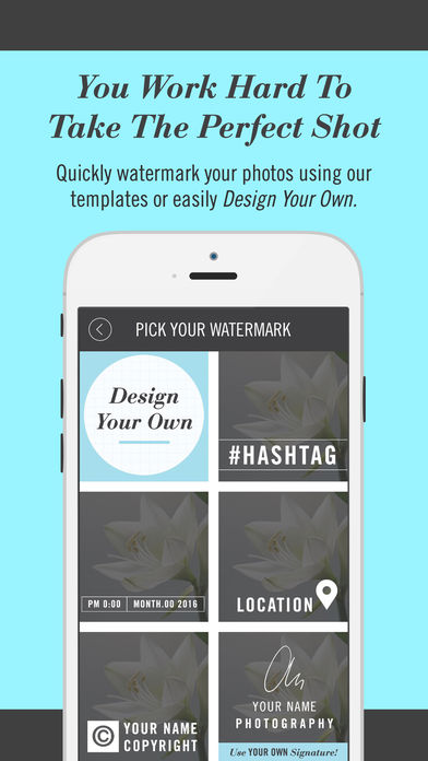 *上市了在有限的时间只有* 让你的马克最美,100%可定制的水印可在任何地方! 水印工作室点¯x可以让你的各种专业设计水印的快速,方便地添加到您的照片。保护并与这些雅致的和离散签名增强您的照片。 •从预先设计的模板,从传统的著作权和注册商标,以更现代的水印像#Hashtag和地点 •自定义标记使用自己的信息 •更改颜色,不透明度,大小和位置 *新的模板被添加所有的时间! 支持问题,不仅仅是电子邮件在麦和support@berzapp.com她会迅速作出反应来帮助你(她是最好的)。