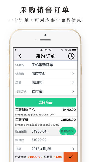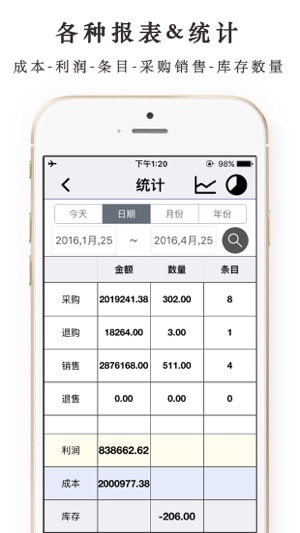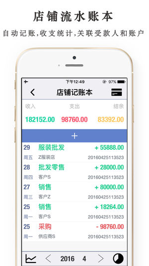 DailySalesPro 正是生意人需要的,把生意搬到手机上来管理。让做生意更简单! 面向广大生意人及个体户的销售管理、采购管理、供应商、客户关系管理、仓库进出货管理、财务管理、资产管理工具。一边管理一边销售,统计分析,轻松打理您的旺铺。 现有特性: - 管理采购、退购、销售、退售,店铺、货品、库存、供应商、客户、个人财务。 - 自动记账;新增一笔进出货,会自动在您所指定的生意账本下,记入一笔新的收支账,不需要重复记账。 - 自动统计分析,多账本,多类别,记账时会关联受款成员(收款人、付款人、供应商、客户)。 - 忘记记账了?还可以补记旧账。 - iCloud 数据备份与同步。 -…
