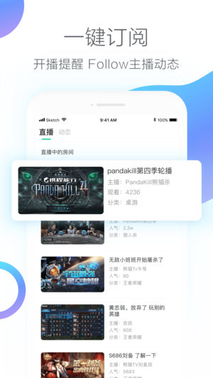 【精彩推荐】 顶级战队:LPL八年追逐,熊猫直播签约战队iG战队仁川一战圆梦,带S8冠军奖杯回中国!更有Rookie女装诺言、Duke&The Shy中文课堂、阿水日常挨揍等爆笑日常直播等你发现; 顶尖主播:托马斯、虎神、图拉夫……都在熊猫等你,王思聪一手创办,明星开黑首选的直播平台,带给你顶级的游戏观看体验; 高端赛事:丰富赛事直播权, LOL、PUBG、炉石传说、守望先锋等游戏赛事应有尽有,多种竞猜游戏,海量弹幕实时互动讨论,一站式满足你对赛事的全部需求! 【绝地求生,熊猫吃鸡】 托马斯:战神托马斯,一键吃鸡发动机 图拉夫:请大家冷静看98k爆头,不要调戏主播 【艺能达人-始于颜值…