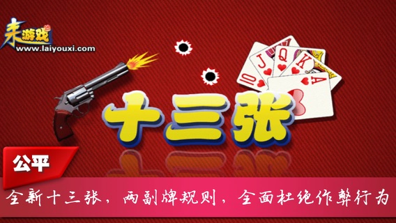 又名 十三张 4人游戏,除去大小王共52张牌。 每家发13张牌,玩家将13张牌分为三墩,头墩放3张,中墩和尾墩各5张。 尾墩牌型大小必须大于中墩,中墩牌型大小必须大于头墩。 所有玩家摆好牌后,开始比牌。 比牌规则:所有玩家牌面朝下,随机抽取一名玩家开始逆时针比牌,比牌时先依次亮出头墩的牌进行比较,然后比较中墩,最后比较尾墩。 牌型大小: 同花顺>四条>葫芦>同花>顺子>三条>二对>一对>散牌 牌面大小: A>K>Q>J>10>9>8>7>6>5>4>3>2 花色大小: 所有花色大小一样 特殊牌型:特殊牌型为13张牌整体组合成的牌型,不参与正常比牌,当正常比牌结束后,按特殊牌型的类型直接向每家赢取固定水数。 牌型大小:清龙>杂龙>十二皇>三同花顺>三分天下>全大>全小>凑一色>双怪冲三>四套三条>五对三条>六对半>三顺子>三同花 比牌算分: 普通牌型按1水计算,同花顺计5水,出现在中墩计10水;四条计4水,出现在中墩计8水;葫芦出现在中墩计2水,三条出现在头墩计3水; 每墩牌型大小确定后,最大玩家按牌型向其他三家收水,然后第二大玩家向其他两家收水,最后第三大玩家向最小玩家收水。 比牌特殊术语:以下情况只在比牌过程中出现,有特殊牌型的玩家不参与。 打枪:若一个玩家三墩牌均大于或平于另一名玩家,比牌结束后,被打枪的玩家需向打枪玩家额外支付3水。(允许出现多次打枪) 全垒打:打枪流程结束后,一个玩家的三墩牌均为最大,称为全垒打。其他家需额外向全垒打玩家支付该玩家三墩所赢水数总和的1倍。(若有特殊牌型,则无全垒打)