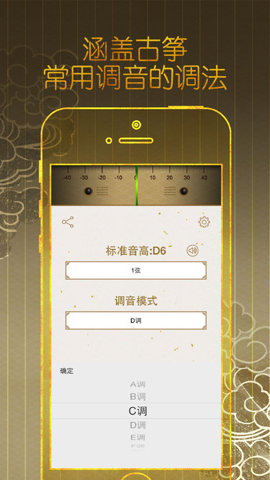 古筝调音器是由琴友设计,琴友必备的调音工具。 -通过手机麦克风,自动测音。 -独特算法,自动调音修正。 -除了D调以外,适配所有古筝调式。 -简单明了,初学者凭直觉就可以使用。