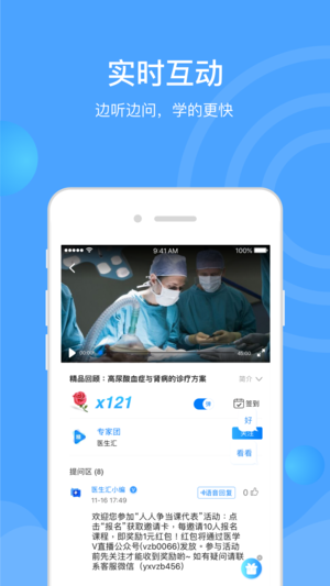 医生汇—医学讲座每日直播,医学视频、文献、病例、专家答疑。 百万中国医生的共同选择,近千位国内顶级专家免费直播医学课程,在线回答问题。 医生汇是一款医生专属直播类交流工具,每天都有各学科专家在线直播交流医学,传播新知,普及诊疗规范,免费帮助广大同仁提升临床诊疗水平。 ====医生为什么爱用医生汇?==== 1、通过直播与全国顶级专家在线沟通,如同面对面交流,快速提升医术。 2、随时随地看专家讲课视频,碎片化时间内边学习边提问,稍后就有同仁帮您解答。 3、不断更新的医学文献和问答内容,遇到疑难随时搜索。 4、每位医生都有自己的品牌,为所有医生提供专属的个人主页,可申请成为讲师,在医生圈内快速提…