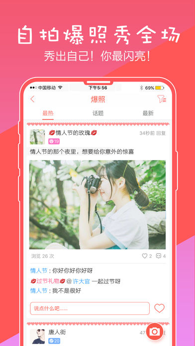 陌名是一款语音电话社交平台APP,是一个刺激年轻人心跳的社交工具。是一个神秘又刺激的语音社交平台,惊喜随时可能发生。和梦中情人不期而遇、和男神女神互述心事、和千里之外的TA成为知己。主要通过即时通话,随时畅聊你感兴趣的话题,也可以欣赏其它用户个性十足的个人资料和生活相册。绝对安全、私密、便捷的实时语音聊天互动,时尚男女必备的新一代社交神器。