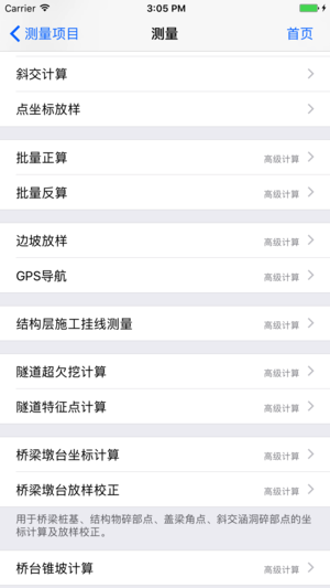道路工程测量是一款功能全面的道路、隧道、桥梁施工测量计算应用程序。可满足工程现场的大部分测量计算工作,界面友好,操作简便。主要功能有: 1、路桥隧工程设计,能处理平曲线、竖曲线、断链、路基板块、路基超高、路基加宽、多级边坡、隧道轮廓线、桥梁桩基数据等。支持数据导入、导出和云存储。 2、路桥隧坐标正反算、批量坐标正反算、隧道超欠挖计算、桥墩桩基坐标计算及校正、桥台锥坡碎部点计算、放样参数计算等常用测量计算。 3、坐标反算、极坐标放样、平面坐标线性变换、建筑坐标与测量坐标的相互变换; 4、各类型导线近似平差计算、测角前方交会、后方交会…