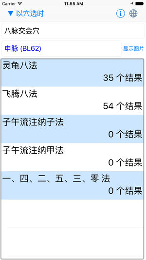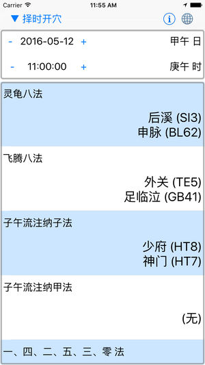 您是针灸师吗? 或着您想要活得更健康? 本应用可告诉您每个时辰该点什么穴。 可用穴法: - 灵龟八法 - 飞腾八法 - 子午流注纳子法 - 子午流注纳甲法 - 1-4-2-5-3-0 法