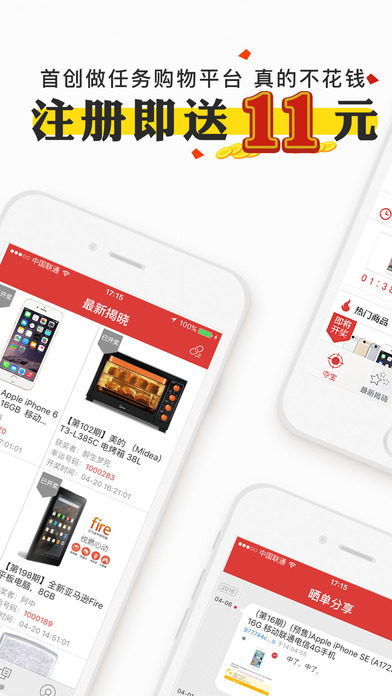 首次支付1元立返1元,送11元大礼包 国内首个不需要花钱的众筹购物平台。 绑定手机号送夺宝币和大礼包! 1元,即可把你的梦想带回家 做任务赚钱也可以用来购物哦! 我们的宗旨是:“乐趣购物,以小博大,收获惊喜!。 【怎么玩】 把一个商品(比如手机)分成100份,每份1元 当所有的份数售出后 根据公开算法计算出中奖者 【不花钱夺大奖】 在空手夺宝中,您可以通过多种方式获得现金,并用于夺宝! 参与越多,中奖概率越大,上万元的商品一元可得,屌丝也能任性! 【公平公正公开】 公平:免费用户和充值用户没有任何区别。 公正:实时福利彩票数据,保证中奖号码的随机性和不可操作性,绝对没有黑幕。 公开:计算公式和相关数据完全公开,用户可以自行验证。 官方微信公众号:空手夺宝
