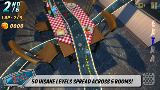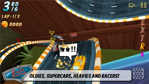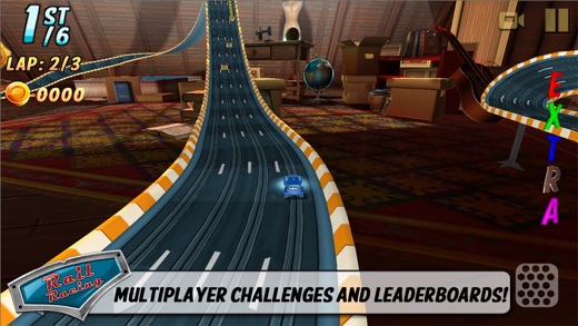 Grab your throttle and get ready for some mobile miniature mayhem! Rail Racing is a fantastically fun-filled slot car racing game from the publishers of Reckless Racing, Raging Thunder 2, Tank Riders and many other mobile best-sellers. Race across fifty twisting tracks spanning a toy-riddled kid's room, a messy garage, a sun-drenched backyard, a darkened kitchen and a dusty attic. Whip your car between slots and watch out for pick-ups, boosters and obstacles. Slipstream behind opponents, then tackle them out of the way to overtake. Push your car to the max, but be careful not to hit those curves at too high a speed. Unlock sixteen unique cars in four different classes (oldies, heavies, supercars and racers) and customize them with paintjobs and stickers. Challenge your friends and rise through the ranking list, or fight for a top spot on the leaderboards!
