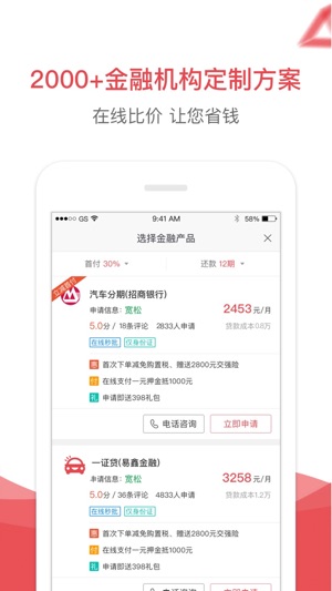 易鑫车贷是腾讯、京东、百度、易车共同投资约100亿元人民币的易鑫集团旗下的中国领先互联网汽车金融平台,为您提供全面的线上汽车金融产品和服务。主要包括新车贷款、二手车贷款、汽车租赁、汽车保险等产品服务,帮您轻松解决购车资金问题! 【核心功能】 1、开走吧:开新车首付1成起,在线审批速度快,省心又省钱; 2、新车贷款:挑选好车快速报价,贴息优惠限时抢购,帮您贷款私人订制省时省力,顾问陪同全程免费; 3、二手车贷款:海量品牌车源优质保障任您挑选,信息公开省时更省心; 4、汽车保险:行业八大品牌,快速获得优惠车险报价,全网首发“真比价”,只买对的,不买贵的; 5、易问答:专业的车贷服务顾问,帮您解决…