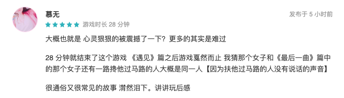 几个必要的场景需要你触摸屏幕寻找物品或者方向,剩下的障碍完全可以直接躲避,这一路也仅有循环播放的背景音乐陪伴,虽然《见》通过黑白色调和超低能见度展现出了视障朋友所身处的环境,但是有些过于简单直接。
