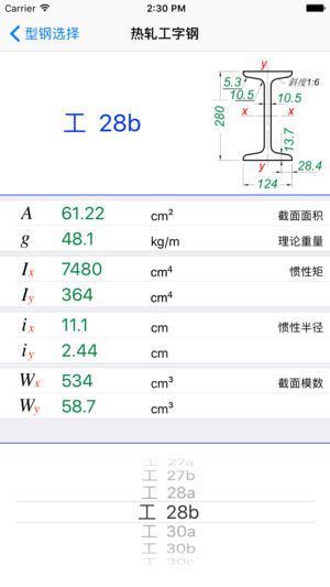 各类型钢及型钢组合截面数据速查,包括型钢的型号、截面尺寸、截面面积、理论重量及截面特性,符合现行国家标准。 【可查询型钢】 • 焊接H形截面(含非对称截面); • 高频焊接薄壁H型钢(含卷边高频焊接薄壁H型钢)(《结构用高频焊接薄壁H型钢 (JG/T 137-2007)》); • 热轧H型钢(《热轧H型钢和剖分T型钢(GB/T11263-2010)》); • 热轧工字钢、热轧槽钢、热轧角钢(《热轧型钢(GB/T706-2008)》); • 焊接圆钢管(《建筑结构用冷成型焊接圆钢管(JG/T 381-2012)》); • 无缝钢管(《无缝钢管尺寸、外形、重量及允许偏差( GB/T 17395-…