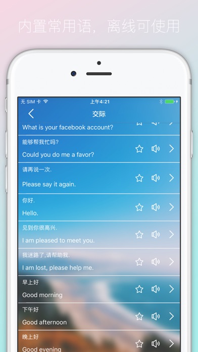世界那么大,你想去看看?别让语言成为你的障碍,随行翻译官给你一场说走就走的旅行! 这款翻译软件支持中文、英语、日语、韩语、法语、俄语、西班牙语等11种语言全球翻译,包含了旅游过程的各个方面的点点滴滴,从旅行出发到旅行过程中的衣食住行,让你和国外当地人无障碍交流,尽情享受旅游时光。
