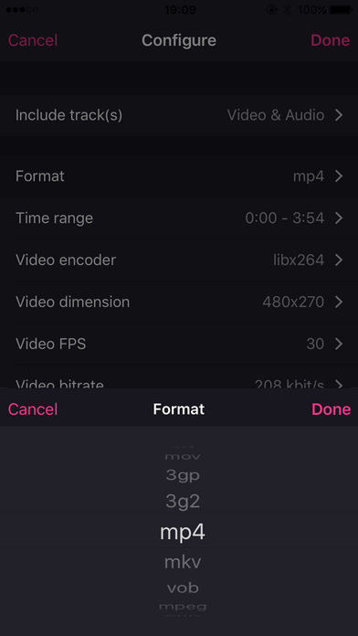 特征: - 支持转换的视频格式: MP4,MKV,MOV,MPEG,MPG,AVI,FLV,WMV,MP3,M4A,M4R,WAV,AAC... - VCVT 视频转换器转换速度是非常快的,用户界面友好易用。 - 支持高级模式, 设置定 FPS,视频比特率,任意分辨率,音频比特率,编解码器 等等。 - 支持从 照相机卷 / 专辑 / Dropbox / iCloud / Google Drive / One Drive 等导入视频或音频... - 支持分享到其他应用