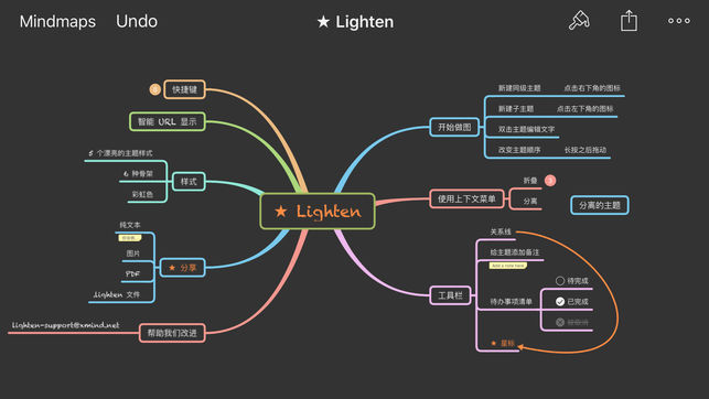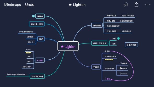 「XMind 出品的思维导图,极简操作界面让你专注于功能使用,理清头绪,捕捉每一个灵感瞬间。」 ——— App Store 推荐语。 XMind Ltd. 荣誉出品。 Lighten 是一款思维导图应用,她是你在 iPhone 和 iPad 上脑力风暴捕捉灵感的绝妙工具。Lighten 令创建思维导图、绘制脑图变得轻松无比触手可及。思维导图不仅助你发挥想象力,提升效率,还可以帮你头脑风暴捕捉想法,建立 Workflow,是进行脑力风暴以及让你的想法可视化的最好方式,它提供了易用性和强大功能之间的最佳平衡。用Lighten 记录下你稍纵即逝的点子和火花,不再让他们溜走。享受这个过程吧! L…