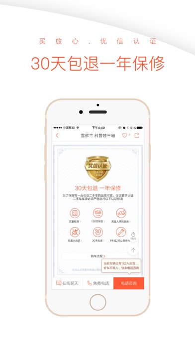 二手车直卖,优信服务,专业检测,优质车源,只需首付30%爱车即可开回家。两年零月供,100%无佣金,100%真实在售,超划算的购车方式,让您买的更舒心;极速审批,无需担保,首付更低,方案灵活,用更少的钱直接把爱车开回家,让您省下更多的资金投资理财赚取高收益; 创新的二手车买车交易方式,为您全程提供无忧保障服务,从检测,报价,交易都有专业人士实时对接,及时沟通,快捷又省心;车况有保障,158项专业车况检测,保证了汽车品质,排除事故车,隐患车,养车更省钱。 通过六项严苛审查为您甄选靠谱车源,每辆车都是经过严格检测的优质车辆,30天包退,1年保修,让你无后顾之忧,优信平台信誉保障; 专业汽车专家为您解答疑问,帮你选车,购车,让你买的放心,开的舒心。 【联系方式】官方客服热线:10106088 【官方微博】@优信二手车 【官方微信】@优信二手车(uxinfuwu) @优信汽车志 uxincar