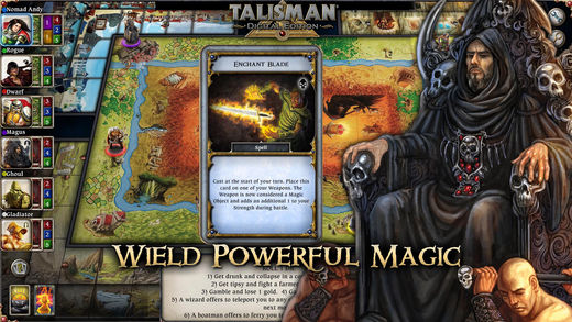 Embark on a perilous fantasy adventure, fighting dragons, battling serpents, and avoiding the deadly curse of the Hag. Will you be the first to claim the Crown of Command? 4.5/5 TouchArcade - ...sky high production quality with a full complement of features. 4/5 BoardGameGeek - A great game with a ton of content. “Talisman: Digital Edition is one of the best board game ports available for iPad period.” – Pocket Tactics NOTE - Requires iOS 7.0 or later. Talisman, the magical quest game from Games Workshop, is a classic board game that has been enjoyed by fantasy fans for nearly 30 years. It’s a game of skilful decision-making based on dice and cards. There are 14 characters available, be it Warrior, Assassin, Thief or Wizard they are all unique in their strengths, weaknesses and special powers. To win the game race your opponents through a perilous realm, journeying to the heart of the land to find the Crown of Command. Many of the expansions, true to the board game, are available with more yet to come. Features list: - Officially licensed Games Workshop game, using the Revised 4th Edition rules with official artwork. - A fully expandable game with more cards and characters available as in-app purchases. The Reaper, Frostmarch, Dungeon, Highland, Sacred Pool, City, Nether Realm, Blood Moon, Firelands and Dragon expansions are available now with more to come! - Local multiplayer - Pass to Play mode. - Real-time online multiplayer mode for 2-6 players. Play against anyone in the world! Game Centre account required for online play. - Play against AI characters in offline games. - Optional house rules included allowing you to tailor games to your liking. - Interactive tutorial. - Online rule book. - AI speed settings so you can play the game at your own pace. - Turn log - view all game actions in a detailed log. - Earn XP as you play! Level-up and unlock special Runestone cards, exclusive to this digital edition. - Languages - English, French, Italian, Spanish, German and Polish. - Game Center Achievements - Leaderboard - How do you compare to the World's best players? NOTE - Compatibility: iPad2 or newer, iOS7.x This app offers in-app purchases. You may disable in-app purchasing using your device settings. See http://support.apple.com/kb/HT4213 for more info. For all the latest updates follow us on twitter: @Nomadgames and Facebook: @Nomadgamesltd FAQ - Can I play with my friends by passing the device around? Yes! Get your family and friends together and race each other to the Crown! Does the game offer cross-platform multiplayer? It certainly does! Play against players on other platforms in online games. Do I need to buy expansions to join an online game with expansions? No! You do not need to buy expansion packs in order to join a game that is using them, but you cannot choose the characters from it until you purchase it. Does the game have asynchronous play? No. Talisman doesn't really suit asynchronous play due to players having to react to spell casting.