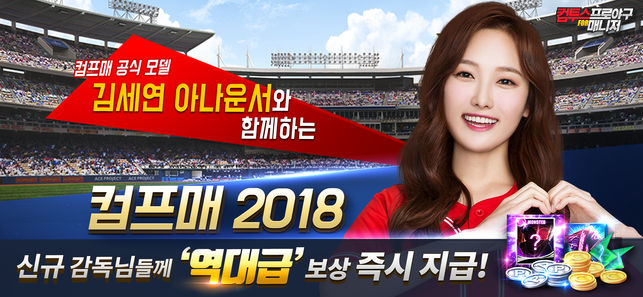 김세연 아나운서와 함께하는 컴프매! 지금 접속하시는 모든 신규 감독님들께 '역대급' 보상 즉시 지급! [대한민국 No.1 프로야구 시뮬레이션] 1. 실제 데이터를 바탕으로 한 [정교한 시뮬레이션] - KBO 라이선스/스포츠투아이 데이터를 바탕으로 구현한 정교한 시뮬레이션! - 투수의 핸드 타입(우완/좌완/언더)에 따른 타격 능력 세분화, 타자의 핸드 타입(우타/좌타)에 따른 투구 능력 세분화 등 실제 프로야구 경기에 가장 근접한 시뮬레이션을 경험할 수 있어요. 2. 누구나 쉽고 자유롭게! - 눈에 쏙쏙 들어오는 인터…