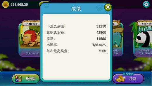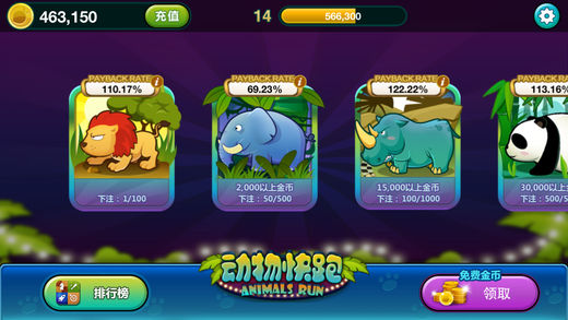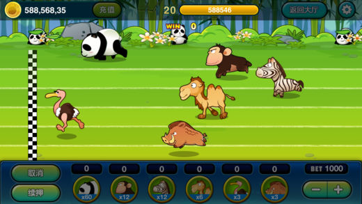 这是电玩城中最好玩的游戏之一 每局比赛有6个超萌的小动物拼命奔跑,猜中冠军你将赢得金币! 操作简单,上手就玩~ 【游戏特色】 ● 6个精美场景,共11个小动物萌萌地竞赛,斑马、野猪、狮子、大象、熊猫……更多动物在等着你; ● 博彩系统:冠军以随机概率算法生成,比赛结果绝对公平——人人能做大赢家; ● 创意玩法:参考“成绩”记录,帮你分析结果、押中冠军,体验刺激的博彩过程; ● 免费金币:金币不足时别忘了领取免费金币哦,等级越高,获赠越多! 【玩法特点】 每局比赛开始前可进行押注,押中冠军动物将得到对应倍率的奖金。当金币积累到一定数量,就能进入更高级别的赛场,赛场级别越高,押注限额越高——机会来了,你可以用更大的赌注赢得更多奖金! 【联系我们】 任何疑问,欢迎咨询—— 客服QQ:527770002 加入我们,与更多朋友交流—— 玩家交流群:195751401