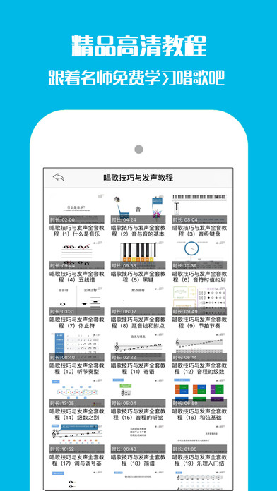 【精选海量唱歌教学课程,轻松学唱歌,实现你的艺术梦想】 《一起学唱歌》非常实用,传授丰富有效的唱歌技巧,让你终身受益匪浅,我们旨在帮助大家更方便的学习歌唱技巧!从最基本的知识和技巧开始讲解,深入浅出,适合各个水平基础的人学习。 名师授课,细致讲解,跟频练习,帮助你解决高音上不去、低音下不来、气息不够用、唱歌容易累、音色不好听、没有表现力的问题。简单学几招,让你在K歌时大显身手。 爱唱歌的各位麦霸现在就拿起你的麦克风跟我们一起唱歌喊麦做发声练习吧,让我们一起用心歌唱,追逐梦想!