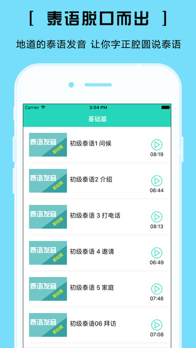 适合所有想学习泰语和对泰语感兴趣的人群。 提供泰语听力、泰语口语等泰语学习资料。简单而实用,包含了最常用的基础泰语口语与短语,随身携带的泰语老师,打造一口流利泰语。 操作简便,界面直观,内容丰富,是学习泰语的好帮手。 在上班路上或者休息时间,边听边学,省时省力。 让泰语入门学习效率翻倍,快速提升泰语水平