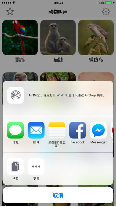 这款应用内置了数百种动物的叫声,包括蝙蝠,熊,蜜蜂,鸟,骆驼,猫,狗,猩猩,鹿,海豚,鸽子,鸭子,老鹰,大象,猎豹,老虎,马,狮子,猴子,蚊子,老鼠,猫头鹰,熊猫,鹦鹉,孔雀,猪,绵羊,海豹,鲸鱼,狼和斑马等。 使用这些动物叫声,您可以教您的小孩认识各种动物的叫声,也可以使用这些叫声与相应的动物交流。您会发现更多更好玩更有趣的用途。欢迎随时留言跟我们分享您的趣事和想法! 使用内置的应用分享功能,您能很方便地将这些动物叫声发送给朋友。希望你会喜欢! P.S. 在播放声音时请记得调整好手机的适当音量并将静音按钮调至“开”的状态。