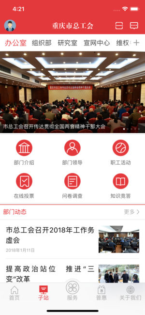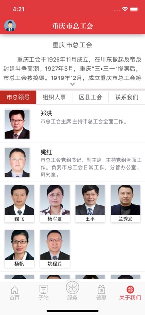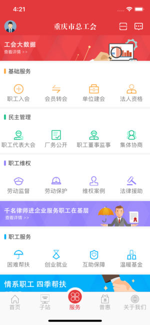 【内容提要】 重庆市总工会官网APP是重庆市总工会推出的移动客户端,广大重庆职工可以通过它浏览和查询工会重要讯息,参与工会举办的重大活动,分享工会提供的会员服务等。 【温馨提示】 APP中包含语音导航功能会持续使用GPS定位服务,切换至后台播报时,仍会保持GPS链接,相比其他操作会消耗更多电量。 GPS在后台持续运行会影响电池续航时间。 APP会获取您的运动信息和使用motion组件来为您提供健康数据服务。