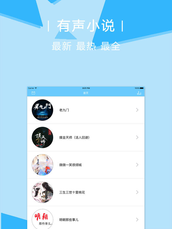 这里有最新最热最全的小说资源,不间断更新的书库,丰富的分类,绝对满足你的需要! 超高音质的听觉享受,解放你的眼睛,唤醒你的耳朵,让你随时随地,想听就听! 有声小说,精彩你的生活!