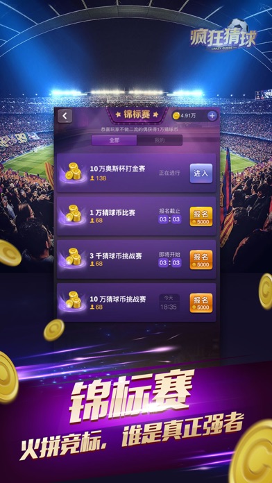 疯狂猜球全面覆盖五大联赛等足球赛事,比分直播、趣味竞猜,好玩刺激! 【产品特色】 1、体育竞猜互动化 将传统的体育竞猜以互动的交互形式呈现,挖掘竞猜的乐趣 2、24小时可参与 覆盖联赛广泛,在各大联赛比赛的重合期,可实现24小时参与赛中竞猜 3、支持200+联赛,支持赛中竞猜 支持对中超、五大联赛、南美主流联赛等200个以上联赛的赛中竞猜 4、玩法简单,猜的快 竞猜足球比赛赛果、猜单双、总进球、比分、下一个进球,不受赛前竞猜限制,比赛中也可随时根据赛场变化,进行实时竞猜。赛中也可边看边猜搭建虚拟球队库,模拟不同国家队在杯赛中进行比赛,24小时不停猜。