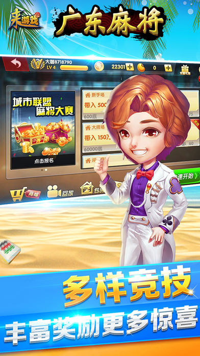 广东麻将-来游戏,采用广东地区流行的麻将规则,特色玩法如买马、推倒胡带鬼等。灵活的玩法配合来游戏的3D界面,让人欲罢不能。 =====游戏特色===== 【包房】新增特色包房,灵活创建房间,邀请好友竞技一决高下 【回放】边录像边玩牌,牌局回放功能让你在回顾牌局的时候还能炫耀牌技 【比赛】更多赛事活动搭配精美礼品,用惊喜回馈用户 【角色】结合手游经典RPG,带着你的MM上牌桌,享受暴击快感 【宝箱】多样钥匙开启多种宝箱,欢乐多多惊喜不断 ====联系我们==== 微信公众号:laiyouxi 客服电话:4000051827 >>来游戏——Unity3D引擎打造的休闲竞技类游戏平台,给您身临其境的3D游戏体验<<