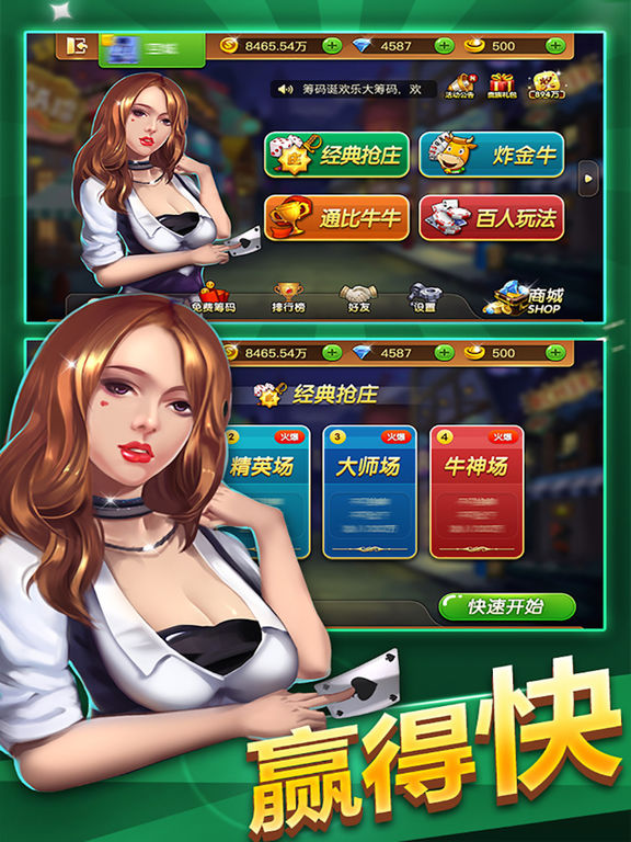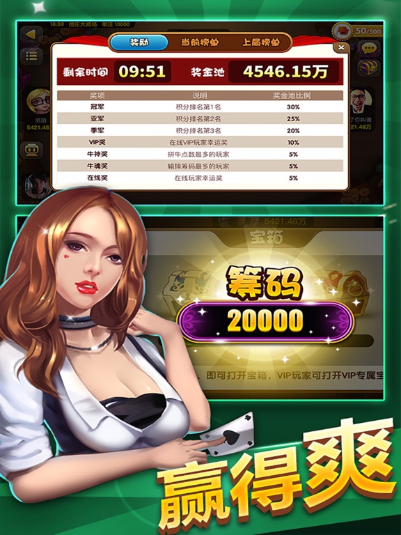 《斗牛欢乐版》是一款多玩法汇集一身,简单刺激的棋牌游戏。精致卡通的界面让您出门在外倍有面子。游戏玩法多样,节奏轻快,紧张刺激,绝对是您居家旅行,出门必备之良方。如果您休息时间零碎,如果您想找人一起游戏,如果您想体验个性有趣,如果您对其它斗牛不满意,您可以试试我们家的游戏,花一点下载的流量,给您一段炫酷的体验。 游戏特色: 1.下载即玩,登陆注册一秒完成; 2.界面精美,精致卡通风格让您倍有面子; 3.百变玩法汇集一身,您的需求我们的追求; 4.每日登录就送奖品,多到你烦; 5.游戏福利,每天都有,不止线上,线下也有哦; 游戏虽好,可不要贪玩哦! 注意锻炼,多陪家人,可以叫上家人一起玩哦!