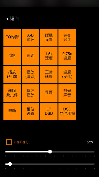 K Music Player诠释了什么是音乐的情感,什么是音乐性,什么是真正的艺术,什么是音乐的如醉如痴。 高档音乐播放器,这个播放器给你非常好的音质和声音韵味,展现最高音质的声音和和对声音和耳机的控制力,同时修正大部分耳机、音箱的缺陷 功能:FLAC无损播放,模拟味声音,SACD,DSD,DXD,CUE支持,LRC歌词,A-B循环复读,睡眠模式,16段高级EQ,耳机缺陷修正,多种音效。温暖温润的声音,人声有韵味。低频饱满弹性而有力。高档的UI设计,RTA频谱特效,DSD最高支持到DSD512 22.5792MHz, 拥有16段参数式EQ均衡器,歌词,CUE,MV 此EQ为128bit高精度PEQ,不会对声音质量产生任何不良影响,并将提升你的设备的回放能力。 支持从其他 App 导入音乐文件、歌词、封面,支持AirDrop无线导入 支持的格式: flac / wav / dsf / dff / DXD / mp3 / flv / mp4 / AAC / HE-AAC / AIFF / ALAC 此播放器专门为顶级用户设计,播放器将给你最美妙动听的音乐。并且你不需要再购买外置DAC,播放器本身是高品质DAC。给你最轻松,便携的音乐体验。音质并不输于外置DAC 如果你需要最高级别音质,请用Lightning接口输出到支持的台式功放机和接驳高级音响系统。完全使用外部高级数模转换电路,播放器会自动过滤DSD高频噪声以免损伤您的高级音响 此播放器支持DSD(直接比特流数字编码),支持的规格包括:DSD64,DSD128,DSD256,DSD512,DXD 高解析音乐 支持文件夹播放列表和过滤 播放器有一个实时的LP胶片唱片风格模块,可以达到LP温暖温润的连续风格,同时包含精确的相位控制(0.00002秒精度) 播放器有专门为EarPods做声音调校,当然使用更好的耳机能获得更好的音质。 支持 EarPods / AirPods / PX200ii / MDR-Z7 / SE846 / HD600/HD650/HD800 和其它高级耳机 播放器有一个模拟味的声音控制器,用来消除声音的数码味 有一个压缩解压引擎能将DFF/DSF文件压缩到原1/4-1/16大小 支持文件夹和文件夹嵌套组合,每个文件夹自动生成一个播放列表 拥有实时的左右声音频谱分析 详细的支持规格: DSD512 1bit 22.5792MHz DSD256 1bit 11.2896MHz DSD128 1bit 5.6448MHz DSD64 1bit 2.8224MHz (SACD) 64bit 192KHZ WAV母带 32bit 44.1KHz 48Khz 88.2khz 96KHz 176.4khz 192Khz 352.8Khz 384Khz WAV 24bit 44.1KHz 48Khz 88.2khz 96KHz 176.4khz 192Khz 352.8Khz 384Khz WAV 16bit 44.1KHz 48Khz 88.2khz 96KHz 176.4khz 192Khz 352.8Khz 384Khz WAV 16bit 44.1khz FLAC 24bit 96khz FLAC 24bit 192khz FLAC 24bit 44.1khz FLAC 24bit 88.2khz FLAC 24bit 176.4khz FLAC 16bit 88.2khz FLAC 16bit 96khz FLAC 16bit 176.4khz FLAC 16bit 192khz FLAC 24bit 352.8Khz DXD 32bit 352.8Khz DXD 32bit 44.1khz Mac aifc 24bit 88.2KHz Mac AIFF 耗电量: DSD 压缩 < aifc < WAV < MP3 < AAC < FLAC < DSD 频率响应: 1 Hz -22k Hz 输入音质: 16bit 44.1KHz (CD) - 64bit 192khz (母带)/1bit 22.5792MHz (DSD512) DSP处理精度: 128bit 输出音质: 32bit 44.1KHz/24bit 96KHz 信噪比: 192 dB 拷贝歌曲文件的方法:使用文档同步工具拷贝至APP共享目录 客户支持邮箱:1413287676@qq.com 享受音乐
