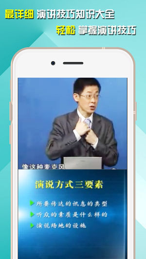 演讲技巧,是演讲的道中之术。技巧的提升,需要重复大量的训练和复习才会不断将技术性的力量提升到艺术性。所以,演讲技巧,是演讲爱好者们必须学习和锤炼的技能。 如何进行好一次成功的演说,必须要做好充分的准备和演练。而演讲稿总是需要体现一定的自身特点的,经过专门的训练能写出观点鲜明结构清楚的文章。 但是你知道该如何把握好自己的声音语气,从而表达出最好的感染效果呢?来下载该应用吧!让资深的演说家为你拨开迷雾,震撼你的听觉世界!