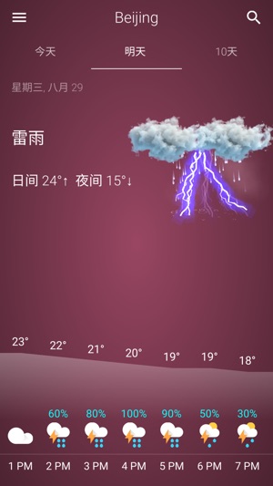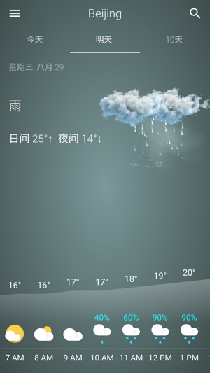 天气应用程序是一个美丽而干净的应用,设计得尽可能简单易用,让你想打开它。只需点击一下,你可以检查今天,明天和未来10天天气。 当前天气今天和明天的天气是华丽的动画效果。见现实的雨,雪或雷雨动画,太阳光线为晴天,月亮的光芒,夜晚的星星,移动的云彩等。他们都反映天气使得它活了过来。 背景色发生变化以反映天气条件让你几乎感觉不到天气。从浅蓝色晴天到较暗的阴雨天,你就会知道怎么好像只有一个一目了然的天气灰色。 天气应用程序是使用地下天气作为气象数据提供商,某些最先进的天气预报提供商可供选择,无论你发现自己这使超准确的数据。 特征 ●当前天气条件和温度的今天。美丽每小时图表今天和今晚的下一个小…