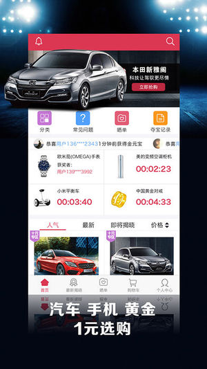 一种全新的众筹购物方式只要一元,就能实现自己拥有潮流商品的愿望! 一元云购百万用户验证,保证商品100%正品,保证100%公正公平; 在一元云购,体验一元夺宝带来的连连惊喜,获得云购全球的正版潮品; 【惊喜体验】 一元奇迹,每天无时无刻的发生。 我们的理念:给你一个有趣的生活! 【梦想的实现】 一元购,想买就买呗,一块钱就购了! 一元就能拥有名牌手机等潮流商品。 只要1块钱,把你想要的带回家 想要最适合表白的礼物,不用找,我这里有; 想要最适合孝敬爸妈的礼物,不用找,我这里就有; 想要一个温暖的家,不用找,我这里就有; 想变成高富帅迎娶白富美,不用找,我这里都有; 让你的存在更完美,拥有独…
