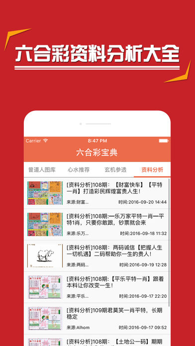 六合宝典是一款基于香港六合彩为内容,集淘料市场、历史开奖、统计资讯、推荐数据于一体的六合彩资讯应用。 六合宝典通过大量的数据,以及运用自主研发的分析六合彩的方法,率先实现了六合彩各种玩法的推荐。应用中的数据统计把特码、平码、波色、生肖等各玩法的历史以图标形式显示出来,用户可以查询到过往任何阶段的数据。六合宝典是具有资源占有低、操作简捷、数据齐全等特点,是目前国内最受欢迎的全能六合彩资讯应用之一。