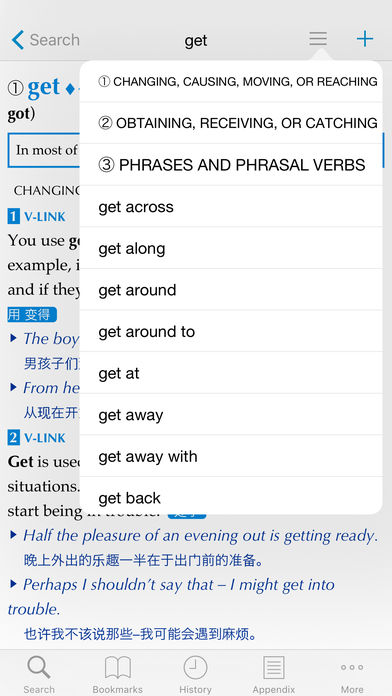 柯林斯 COBUILD 高级英汉双解词典 来自“活生生的英语”划时代的英汉双解辞典 “柯林斯 COBUILD 高级英汉双解词典”内置有由英国 HarperCollins 公司出版的英英辞典《Collins COBUILD Advanced Dictionary of English, English/Chinese》,是最适合英语学习者的电子辞典应用程序。 外观漂亮、查找迅速 从 4-inch iPhone 到最新的 iPhone 7 Plus、iPad Pro 本产品均可支持,其显示效果比现有的移动设备更完美。另外,在 iPad 中采用了让辞典更便于使用、更便于查看的“分屏视图”,从搜索到显示内容均可无缝进行,实现了未曾有过的快速显示内容和顺畅的使用感受。 进化的搜索功能 准确搜索到想查找的单词。您是否有过只想起最初几个文字的时候?如果使用本产品的新功能“模式搜索”,例如搜索在“w”和“y”之间含有两个字的单词,就可以设置仅在指定文字的地方含有任何文字的搜索条件。这项功能对搜索想不起来的单词以及解谜填字游戏非常方便。 毋庸置疑,与我公司其他的辞典同样,它还内置有“标题搜索”、“例句搜索”、“词组搜索”功能,可以准确搜索出所需的信息。在“例句搜索”中,它可以通过各种各样的代表性例句搜索出所需要的措辞,这在书写邮件等英文文件时将是一个强有力的功能。另外,由于支持“App Extension(自定义操作)”,利用本产品可以搜索出在 Safari 中选出的单词。 还有拖动搜索结果可清除搜索文字的“拖动清除”功能,以及通过设定在启动时等清除搜索文字的“清除搜索文字”功能,您可以灵活地设置重新搜索时的操作。 收录有丰富的语音数据 查单词、听发音、记单词。在本产品中大约收录了1万7千条语音数据(美式发音)。不仅能查到单词的意思,还可以学习正确的发音。此外,还可以从应用程序简单地改变回放音量。 跳跃式查词 不理解的单词请直接选中查询。本产品内置了在“大辞林”中大受好评的选中单词跳跃查词功能。选中不理解的单词并将手指放开后,就可以当场查询单词的意思。 支持 3D Touch 我们也支持了 iPhone7 开始的新功能 ——“3D Touch”。轻按搜索结果、书签和显示列表后,就可以使用 3D Touch 的 Peek 手势查看解说文字。再进一步按下后就会启用 Pop 手势打开解说文字页面。此外,本应用还支持快速操作,您可以从 Home 画面中快速访问搜索、书签、历史记录等应用功能。 书签和历史记录 刚才已经查过了哟。本产品内置有“书签”以及“历史记录”功能,所以重要的单词以及反复查找过的单词,可以很便利地放入书签、可以从历史记录中确认刚刚查找的单词。 另外,还可以将词组以及例句放入书签中,因为在历史记录中也备有显示和搜索功能,所以可以更具体准确地记录所查找的内容。书签没有数量限制,历史记录可以放入 500 个词条,还可以个别删除以及按顺序排列书签。 您还可使用 iCloud,在多个设备上同步书签。在移动中将在意的单词放入书签后,在家里放着的 iPad 中也会存入书签,十分方便。 按照自己的喜好进行设置 请设置自己的喜好。在“柯林斯 COBUILD 高级英汉双解词典”中,为您准备了以下项目供您设置应用。搜索结果的文字大小和正文的文字大小等可供变更,您可以调整至便于使用、便于查看的大小。 ・颜色设置 ・正文的文字大小 ・列表的文字大小 ・音量的调整 ・消除搜索文字 ・通过摇动消除 ・剪贴板搜索 ・同步书签 ・全屏布局(仅 iPad)