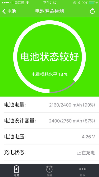 您还在当心手机没电么? 您想知道电池是否使用正常么? 没有什么事是比手机没电还可怕的了! 现在免费下载超级电池医生可以帮助您监控关于电池的相关信息. 超级电池医生是一款用于查看电池信息和健康指标的多功能电池管理工具,体积小,简洁方便,来帮助您更好的管理您的手机. 主要功能: - 电池寿命查询,显示电池电量损耗度 - 精美的iPhone/iPad充电时钟: 多种精美的充电时钟主题界面, 并支持自定义壁纸, 让充电过程不再枯燥 - 准确预估电池可用时间, 外出不必担心电量不足 - 电池充满电自动提醒 - 充电定时提醒, 设置后每天唤醒您按时充电, 暖心电池先生 - 系统信息查询: 包括设备名,CPU,内存动态信息,磁盘使用度,网路IP地址信息等 * * * * * * * * * * 如果您的觉得超级电池管家很好用, 希望您给予五星好评. 您的五星好评是我们更新并升级这个应用的动力,谢谢您的理解与支持! 如果您在使用中出现任何问题,或者有任何方面的意见建议,通过以下方式都可以联系到我们,我们将在24小时内给您回复. 1.新浪微博:@elinasoft 2.电子邮件: support@elinasoft.com 3.iMessage信息: support@elinasoft.com