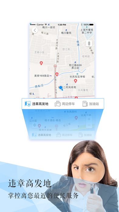 手机违章-最精准全国免费车辆违章查询助手,手机违章数据来自交管12123及全国各地车管所,手机违章代办助手更方便。支持全国300多个城市违章查询服务,新违章实时提醒,方便您随时随地查询处理爱车违章情况。同时智能违章预警,帮您远离罚单,专业的汽车资讯:从车盲到专家,有一个手机违章就够了;全国使用人数多覆盖城市广的车主出行必备汽车违章查询app。 【违章查询】 覆盖全国支持300多个城市,异地查询、多车查询一键搞定,同步交管局,专业查询,让您一目了然! 【实时提醒】 违章信息更新及时、快速、准确;新违章实时提醒。 【专业车讯】 日均超30篇小编原创文章,提供上市新车资讯、购车攻略、车型评测、车展现场报道等精彩内容。 【多重保障】 多重保障,登陆并云端同步您的车辆信息,保证您的车辆信息永不丢失。 我们还提供这些贴心的功能: 1、历史违章记录; 2、违章高发地查询; 3、实时路况; 4、周边停车场查询; 5、所在城市天气信息、洗车指数、等一手掌握。