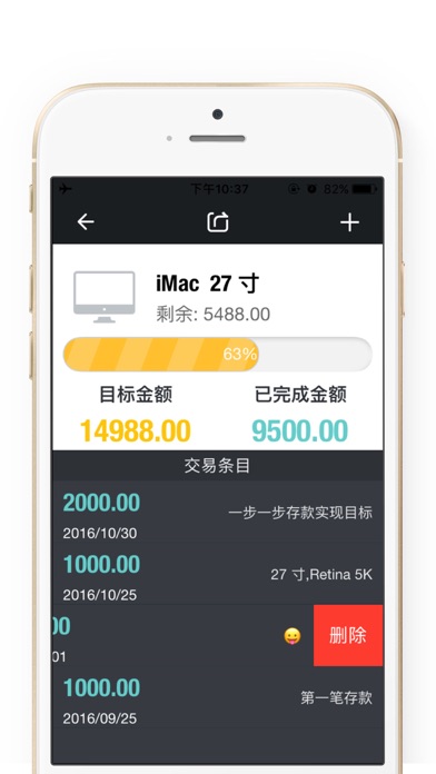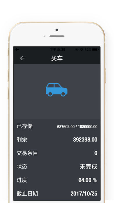 SavingMoney - 快捷方便的储蓄目标管理 - 保持跟踪您的储蓄,存储、存款更多! SavingMoney 跟踪您的经常性开支,收入,甚至您的股票·投资·收益组合,以显示您现在有多少金钱可以去购买、投资、支配...... 根据您的需要,您可以有许多不同的储蓄目标;无限制的添加新的目标并去努力完成! 【易于使用】 例如: 我要买一辆代步车,总价80万左右。 1,先使用 SavingMoney 创建一个买车计划/储蓄目标 2,有可支配的资产时,添加一笔又一笔的存款 3,进度条会慢慢地填充满,并且我可以知道 当前已经完成的进度 & 还未完成的金额有多少 4,完成后会自动归类到已完成项 很简单方便! 只需要关心储蓄目标的进度 & 未完成的金额有多少 【一些特性】 - 目标剩余天数以及逾期 - 丰富多彩的图标(未来会持续增加) - 设定目标的截止日期 - 可以快速完成剩余的金额 - 完成/未完成的目标管理 - 直观,美观的界面 - 功能丰富,易于使用 - 目标进度,一目了然 - 设置一个储蓄目标,并直观地看到您的进度百分比 - 可参阅您的存款历史 - 日期,金额,以及是如何保存的,记录的清清楚楚 - 多种方式分享您的储蓄目标 - 显示您的最新(完成与未完成)的储蓄目标 - 免费更新,以确保完美的使用和新的附加功能 - 无限制的储蓄目标管理,以及更多的功能 ========[Pro 版本]======== - iCloud 备份与设备同步 - CSV导出 - 密码保护数据 - 未来不断增加的新特性、新功能