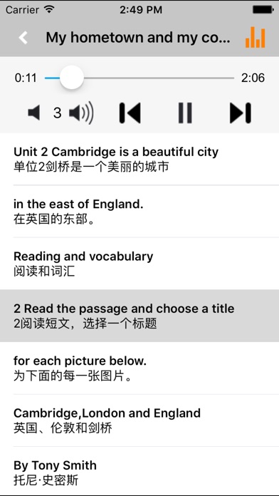 *全套原版录音和教材完全同步,助您成为英语大明星。 *根据课本配套,此应用为外研社新标准初中英语八年级上册、下册完全最新版。 *涵盖全部内容,包括全部课程对话和常用句子、单词列表、复习章节等。 *操作简便、携带方便,永远告别磁带和光盘。 【新梦想】教育应用系列完全同步教材制作,内容完全一致,您可以使用它来进行课文学习,播放教材配套音频,发音纯正地道,寓教于乐,让学习更高效和有趣。 该应用界面简洁操作简单,让孩子在舒适的环境下学习,能点,能读,更能说,是小朋友的好老师、好家长。 功能特色 ■中英文双语对照,同步语音,准确清晰。 ■内容与录音质量放心,地道纯正、原汁源味。 ■语音播放灵活,即点即学,跟读模仿随时随地。 ■完全同步教材制作,内容完全一致。 ■后台播放人性化,锁屏状态可随身听读。 ■界面简单大方,意图明了,功能实用,操作方便。 用我们的责任心、爱心、细心地去点燃学生们的梦想,让有梦想的孩子们慢慢的变化!学习成绩逐步提高,慢慢的,他们又有了新梦想,如此反复...... 让中学生中英文双语对照,发音准确清晰,是小朋友自学的好老师,把家长从繁琐的辅导解答中解放出来! 【新梦想】教育应用系列,快乐中学习,轻松点一点,英语真容易! —【新梦想】教育应用系列— 适用于多种教学场景,您可以更加便捷地进行碎片化学习,期待您的使用! 致力于为中国K12教育提供最优秀的互联网教育软件! 新梦想乐园,伴随青少年健康快乐的成长! *****软件功能***** 1.通用应用,同时支持iPhone,iPod touch,iPad设备 2.可以自动顺序播放功能 3.可以自动记录播放位置,不用担心下次找不到听到哪 4.支持离线播放,即使不联网也一样听,到哪都不怕 5.支持手动拖拽前进、后退播放 6.在兼顾软件容量以及更多课程的情况下,我们最大限度保证音频的高质量,每个有声读物片段都是经过我们精选和亲测 7.最最重要的功能,可以拖动字幕定位,音频随之定位 本应用与《义务教育教科书外研社新标准初中英语八年级上册、下册》课本同步 新版目录(八年级上册): Module 1 How to learn english Module 2 My home town and my country Module 3 Sports Module 4 Planes,ships and trains Module 5 Lao she teahouse Module 6 Animals in danger Revision module A Module 7 A famous story Module 8 Accidents Module 9 Population Module 10 The weather Module 11 Way of life Module 12 Help Revision module B 新版目录(八年级下册): Module 1 Feelings and impressions Module 2 Experiences Module 3 Journey to Space Module 4 Seeing the doctor Module 5 Cartoons Revision module A Module 6 Hobbies Module 7 Summer in Los Angeles Module 8 Time off Module 9 Friendship Module 10 On the radio Revision module B