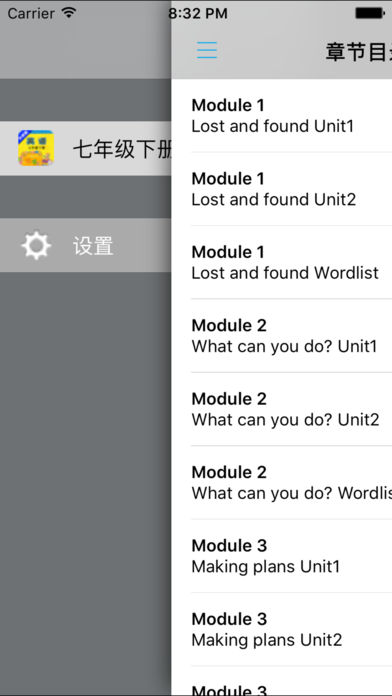 *全套原版录音和教材完全同步,助您成为英语大明星。 *根据课本配套,此应用为外研社新标准初中英语七年级下册完全最新版。 *涵盖全部内容,包括全部课程对话和常用句子、单词列表、复习章节等。 *操作简便、携带方便,永远告别磁带和光盘。 【新梦想】教育应用系列完全同步教材制作,内容完全一致,您可以使用它来进行课文学习,播放教材配套音频,发音纯正地道,寓教于乐,让学习更高效和有趣。 该应用界面简洁操作简单,让孩子在舒适的环境下学习,能点,能读,更能说,是小朋友的好老师、好家长。 功能特色 ■中英文双语对照,同步语音,准确清晰。 ■内容与录音质量放心,地道纯正、原汁源味。 ■语音播放灵活,即点即学,跟读模仿随时随地。 ■完全同步教材制作,内容完全一致。 ■后台播放人性化,锁屏状态可随身听读。 ■界面简单大方,意图明了,功能实用,操作方便。 用我们的责任心、爱心、细心地去点燃学生们的梦想,让有梦想的孩子们慢慢的变化!学习成绩逐步提高,慢慢的,他们又有了新梦想,如此反复...... 让中学生中英文双语对照,发音准确清晰,是小朋友自学的好老师,把家长从繁琐的辅导解答中解放出来! 【新梦想】教育应用系列,快乐中学习,轻松点一点,英语真容易! —【新梦想】教育应用系列— 适用于多种教学场景,您可以更加便捷地进行碎片化学习,期待您的使用! 致力于为中国K12教育提供最优秀的互联网教育软件! 新梦想乐园,伴随青少年健康快乐的成长! *****软件功能***** 1.通用应用,同时支持iPhone,iPod touch,iPad设备 2.可以自动顺序播放功能 3.可以自动记录播放位置,不用担心下次找不到听到哪 4.支持离线播放,即使不联网也一样听,到哪都不怕 5.支持手动拖拽前进、后退播放 6.在兼顾软件容量以及更多课程的情况下,我们最大限度保证音频的高质量,每个有声读物片段都是经过我们精选和亲测 7.最最重要的功能,可以拖动字幕定位,音频随之定位 本应用与《义务教育教科书外研社新标准初中英语七年级下册》课本同步 新版目录: Module 1 Lost and found Module 2 What can you do? Module 3 Making plans Module 4 Life in the future Module 5 Shopping Module 6 Around town Revision module A Module 7 My past life Module 8 Story time Module 9 Life history module 10 A holiday journey Module 11 Body language Module 12 Western music Revision module B