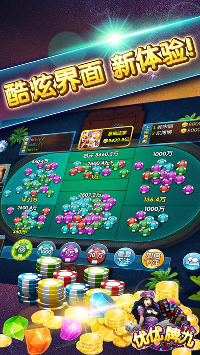 简介: 优优牌九来啦!经典游戏!简单刺激,免费下载! 牌九是中国传统骨牌游戏的一种,玩法是依据两扇骨牌点数的不同组合,来比较大小,以决定胜负。优优牌九规则与普通牌九类似,指尖操作更加方便。优优牌九准备了传统骨牌和现代扑克两种选择,玩家可根据喜好自由选择。 游戏特色 1、游戏过程全免费 2、高清界面,有趣的配乐,游戏更有乐趣 3、游戏规则及操作方式绝对简单易上手,轻轻松松玩起来;游戏的快节奏带给您刺激体验,各等级房间可供选择,心跳刺激节节升 4、支持各种联网方式,线上万人陪您游戏 5、设立银行,筹码可随时存取