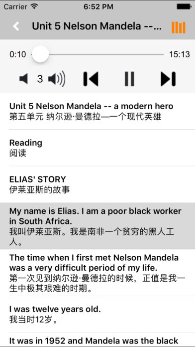*全套原版录音和教材完全同步,助您成为英语大明星。 *根据课本配套,此应用为人教版高中英语必修1完全最新版。 *涵盖全部内容,包括全部课程对话和常用句子、单词列表、复习章节等。 *操作简便、携带方便,永远告别磁带和光盘。 【新梦想】教育应用系列完全同步教材制作,内容完全一致,您可以使用它来进行课文学习,播放教材配套音频,发音纯正地道,寓教于乐,让学习更高效和有趣。 该应用界面简洁操作简单,让孩子在舒适的环境下学习,能点,能读,更能说,是中学生的好老师、好家长。 功能特色 ■中英文双语对照,同步语音,准确清晰。 ■内容与录音质量放心,地道纯正、原汁源味。 ■语音播放灵活,即点即学,跟读模仿随时随地。 ■完全同步教材制作,内容完全一致。 ■后台播放人性化,锁屏状态可随身听读。 ■界面简单大方,意图明了,功能实用,操作方便。 用我们的责任心、爱心、细心地去点燃学生们的梦想,让有梦想的孩子们慢慢的变化!学习成绩逐步提高,慢慢的,他们又有了新梦想,如此反复...... 让中学生中英文双语对照,发音准确清晰,是中学生自学的好老师,把家长从繁琐的辅导解答中解放出来! 【新梦想】教育应用系列,快乐中学习,轻松点一点,英语真容易! —【新梦想】教育应用系列— 适用于多种教学场景,您可以更加便捷地进行碎片化学习,期待您的使用! 致力于为中国K12教育提供最优秀的互联网教育软件! 新梦想乐园,伴随青少年健康快乐的成长! *****软件功能***** 1.通用应用,同时支持iPhone,iPod touch,iPad设备 2.可以自动顺序播放功能 3.可以自动记录播放位置,不用担心下次找不到听到哪 4.支持离线播放,即使不联网也一样听,到哪都不怕 5.支持手动拖拽前进、后退播放 6.在兼顾软件容量以及更多课程的情况下,我们最大限度保证音频的高质量,每个有声读物片段都是经过我们精选和亲测 7.最最重要的功能,可以拖动字幕定位,音频随之定位 本应用与《普通高中课程标准实验教科书人教版高中英语必修1》课本同步 新版目录: Unit 1 Friendship Unit 2 English around the world Unit 3 Travel journal Unit 4 Earthquakes Unit 5 Nelson Mandela - a modern hero Workbook Unit 1 Friendship Unit 2 English around the world Unit 3 Travel journal Unit 4 Earthquakes Unit 5 Nelson Mandela - a modern hero Appendices Notes to the texts Grammar Words and expressions in each unit Vocabulary Irregular verbs Changes in international phonetic symbols for English
