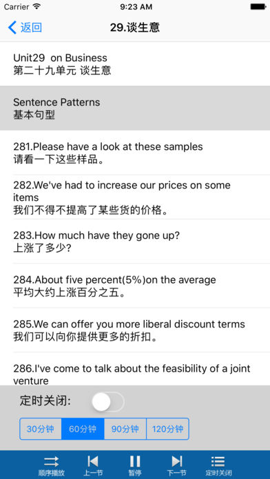 软件特点: ①:语音文本同步朗读,边看边听学习更容易; ②:那里不会点哪里,点击发音; ③:定时播放,学习时间自己定; ④:锁屏播放,眼睛累了耳朵听; 更多精彩内容请下载体验! 英语是全世界适用范围最广的一种语言,很高兴你能下定决心学习。本文将带领你从零开始,一步一步走入英语的世界。有音标、基础词汇、入门语法学习,也准备了从零开始自学英语的方法,你准备好了吗? 初级英语将基本语法穿插于句子的学习之中,并设计了实际场景对话,内容生动,方法科学,侧重于教您英语基本会话,内容涵盖历史,经济,文化,日常生活,社会交往,涵盖全面。