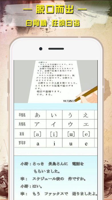 学日语好帮手是一款针对于日语初学者的一款基于视频的教程软件。 软件内容: 1.日语入门,包含了五十音图的入门教程,给你日语学习打下基础 2.新版标准日语教材,让你跟着老师提高学习。 3.日语考试的 辅导课程,对于想考证考日语的同学,真的是大福利啊,每周坚持看,日语提高不是难事。 4.人文日语,日本旅游攻略学习教程,主要针对于实际的日语学习,实用日语,对出国的朋友大有帮助。 软件特色: 丰富的视频教程 循序渐进的学习方式 绘声绘色的教学模式 更快更好地提高日语
