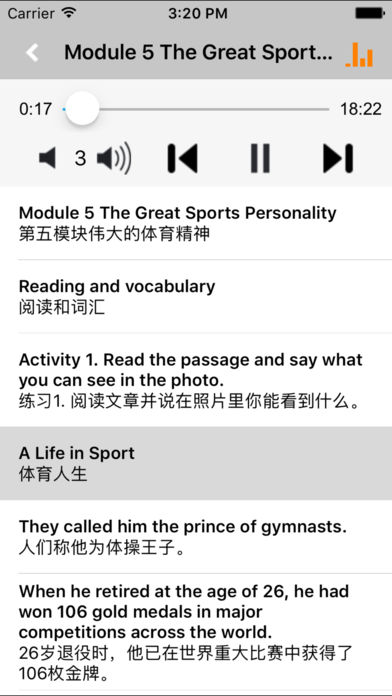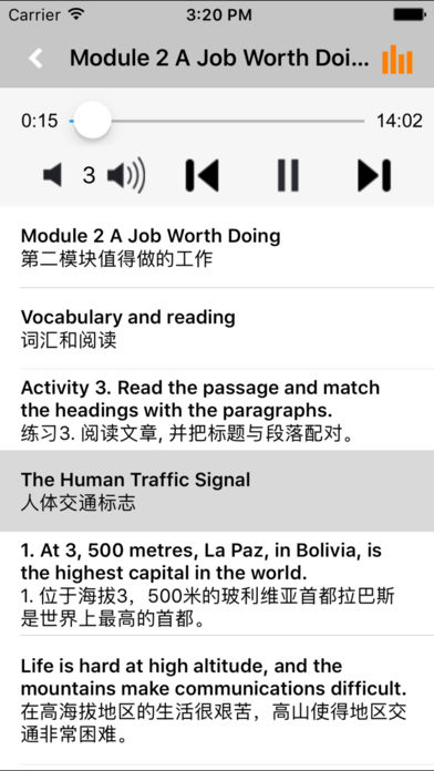 *全套原版录音和教材完全同步,助您成为英语大明星。 *根据课本配套,此应用为外研版新标准高中英语必修5完全最新版。 *涵盖全部内容,包括全部课程对话和常用句子、单词列表、复习章节等。 *操作简便、携带方便,永远告别磁带和光盘。 【新梦想】教育应用系列完全同步教材制作,内容完全一致,您可以使用它来进行课文学习,播放教材配套音频,发音纯正地道,寓教于乐,让学习更高效和有趣。 该应用界面简洁操作简单,让孩子在舒适的环境下学习,能点,能读,更能说,是中学生的好老师、好家长。 功能特色 ■中英文双语对照,同步语音,准确清晰。 ■内容与录音质量放心,地道纯正、原汁源味。 ■语音播放灵活,即点即学,跟读模仿随时随地。 ■完全同步教材制作,内容完全一致。 ■后台播放人性化,锁屏状态可随身听读。 ■界面简单大方,意图明了,功能实用,操作方便。 用我们的责任心、爱心、细心地去点燃学生们的梦想,让有梦想的孩子们慢慢的变化!学习成绩逐步提高,慢慢的,他们又有了新梦想,如此反复...... 让中学生中英文双语对照,发音准确清晰,是中学生自学的好老师,把家长从繁琐的辅导解答中解放出来! 【新梦想】教育应用系列,快乐中学习,轻松点一点,英语真容易! —【新梦想】教育应用系列— 适用于多种教学场景,您可以更加便捷地进行碎片化学习,期待您的使用! 致力于为中国K12教育提供最优秀的互联网教育软件! 新梦想乐园,伴随青少年健康快乐的成长! *****软件功能***** 1.通用应用,同时支持iPhone,iPod touch,iPad设备 2.可以自动顺序播放功能 3.可以自动记录播放位置,不用担心下次找不到听到哪 4.支持离线播放,即使不联网也一样听,到哪都不怕 5.支持手动拖拽前进、后退播放 6.在兼顾软件容量以及更多课程的情况下,我们最大限度保证音频的高质量,每个有声读物片段都是经过我们精选和亲测 7.最最重要的功能,可以拖动字幕定位,音频随之定位 本应用与《普通高中课程标准实验教科书外研版新标准高中英语必修5》课本同步 新版目录: MODULE 1 British and American English MODULE 2 A Job Worth Doing MODULE 3 Adventure in Literature and the Cinema MODULE 4 Carnival MODULE 5 The Great Sports Personality MODULE 6 Animals in Danger MODULE 7 Revision Appendices Notes to the Texts Grammar Words List