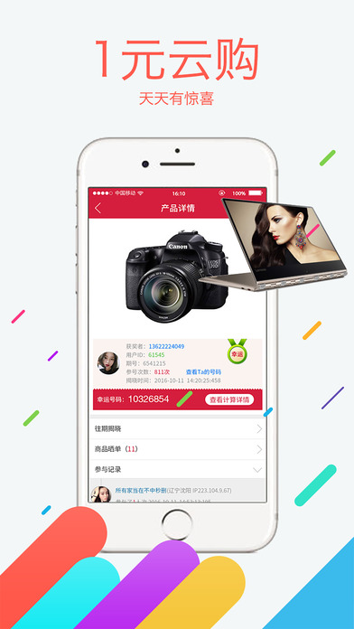 在一元云购里,你可以参与丰富的活动,实现自己一元获得热门潮流商品的愿望! (特别声明:本活动与苹果公司无关!)