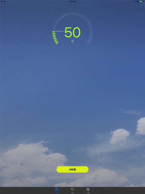 ==最后一天半价!赶快下载吧!== 支持iOS10! PM2.5实时监测仪,关注空气,关心生活质量,关爱健康! *****功能特性***** 1. PM2.5实时监测,雾霾有多重、空气污染情况即刻知晓! 2. 涉及SO2、NO2、PM10、 PM2.5、O3、CO等六项污染物监测,数据来源权威全面而精准! 3. 不同数值和颜色显示,一眼判别空气质量情况,合理安排生活出行! 4. 附带好用的温度计功能,实时监测当前温度!